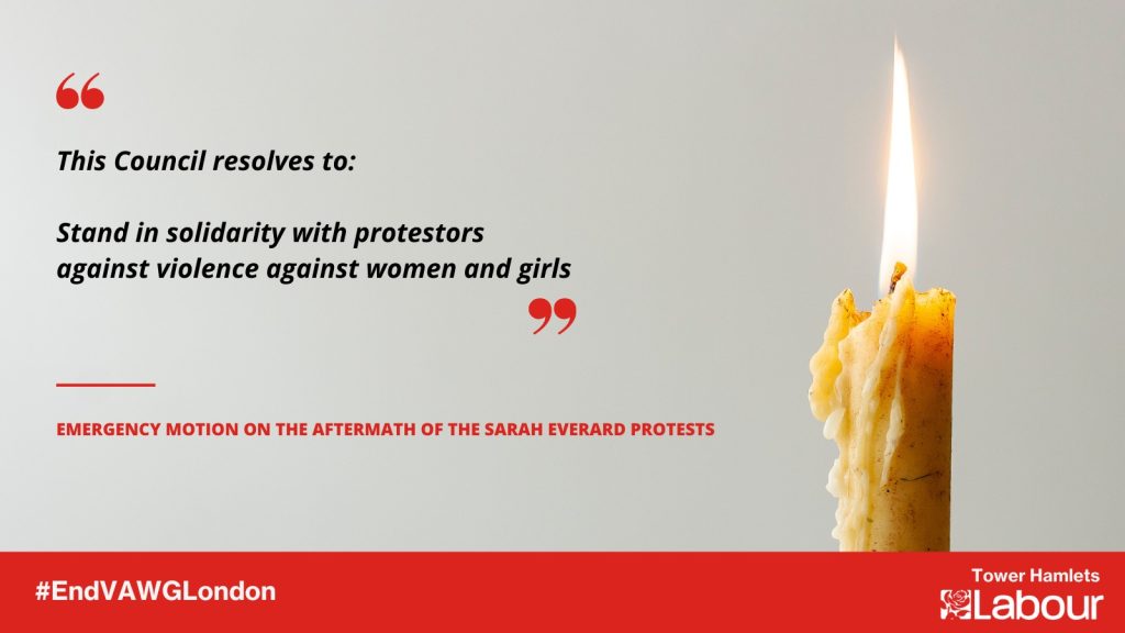 Tower Hamlets Council this week (17th March) agreed an urgent motion addressing the aftermath of the Sarah Everard protests and setting out a series of actions for the council to take to bring about cultural change. The motion highlighted the impact and extent of violence against women and girls, the culture of misogyny in society, […]
